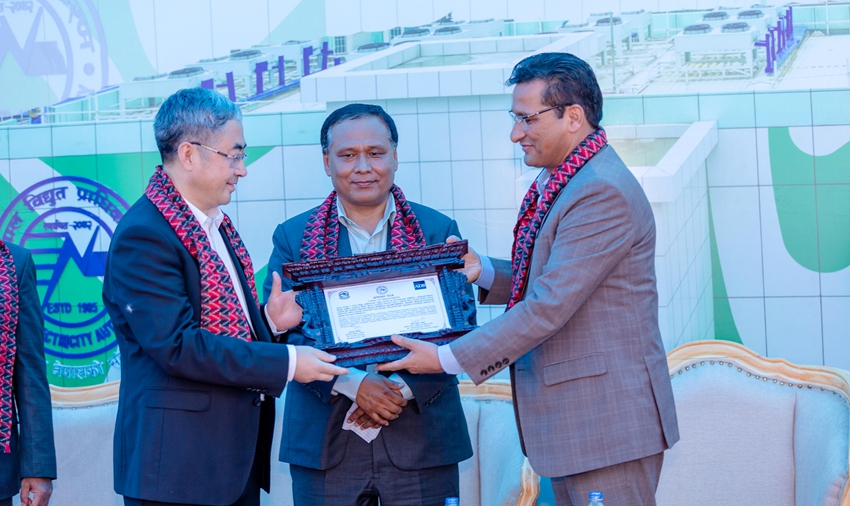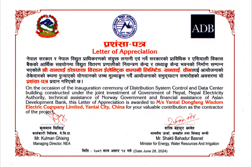 Shakti Bahadur Basnet先生为仪式揭幕,并高度赞扬威思顿的敬业精神及专业能力,代表尼泊尔电力局为威思顿送上感谢函。